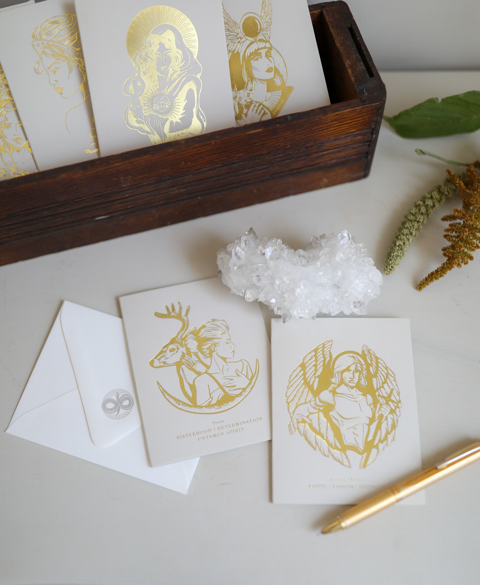 Diana, the Roman goddess of the Moon and protector of women, children, animals, and the disempowered, embodies the perfect balance of fierce independence and nurturing care. As a maiden goddess and sacred huntress, she demonstrates how to serve others with reverence while maintaining personal freedom and sovereignty. Call on her when you’re at a crossroads or lacking self-reliance.