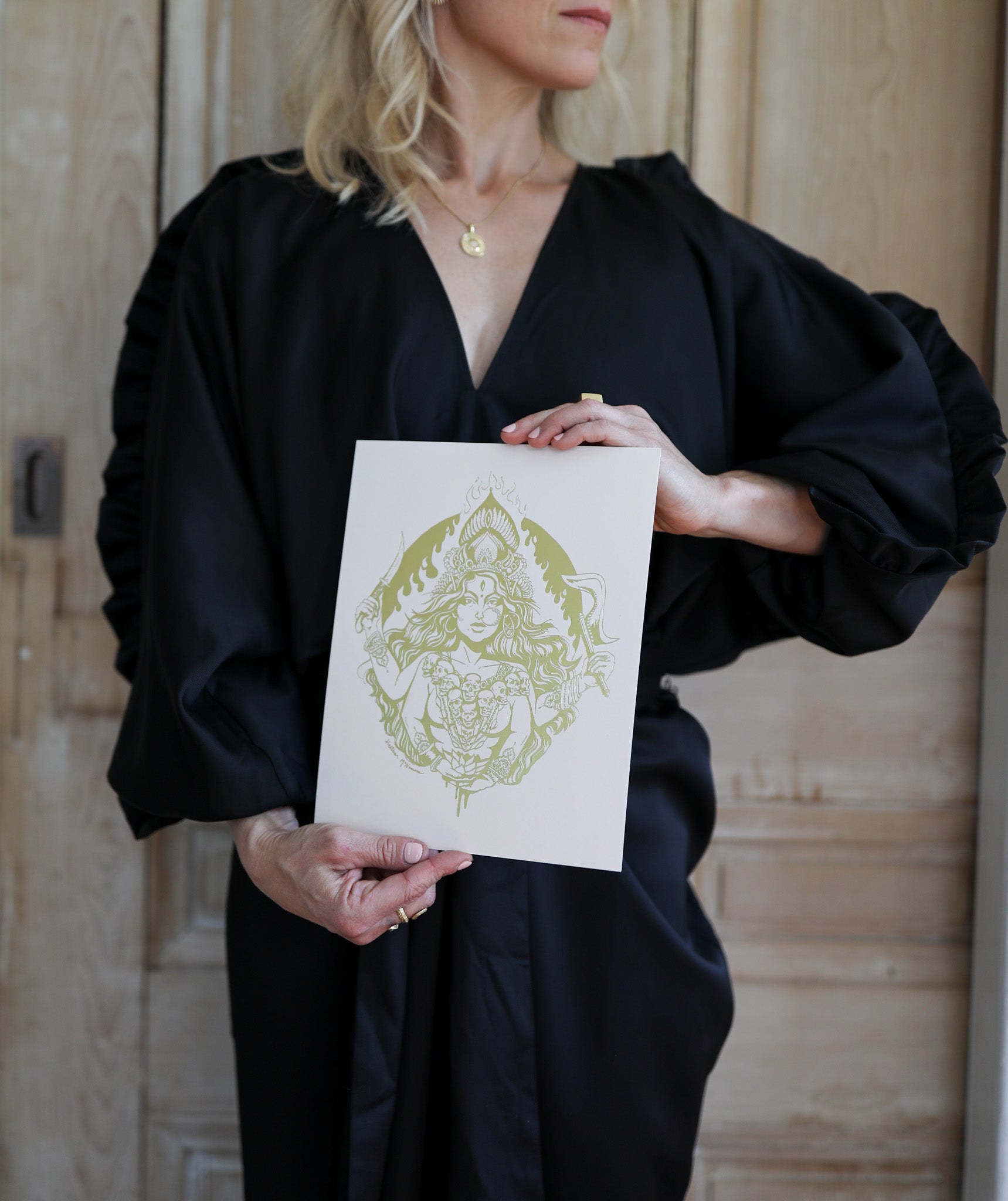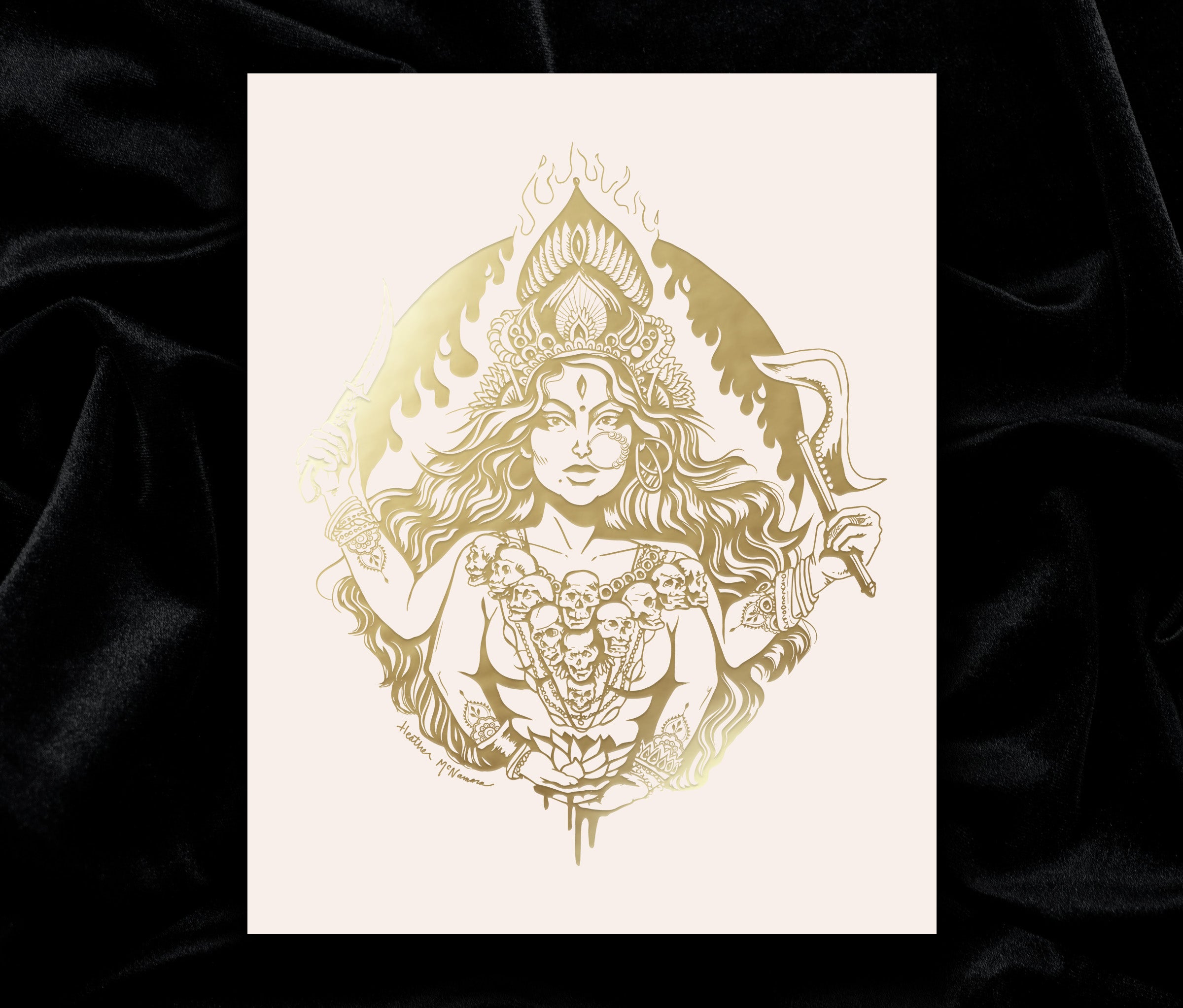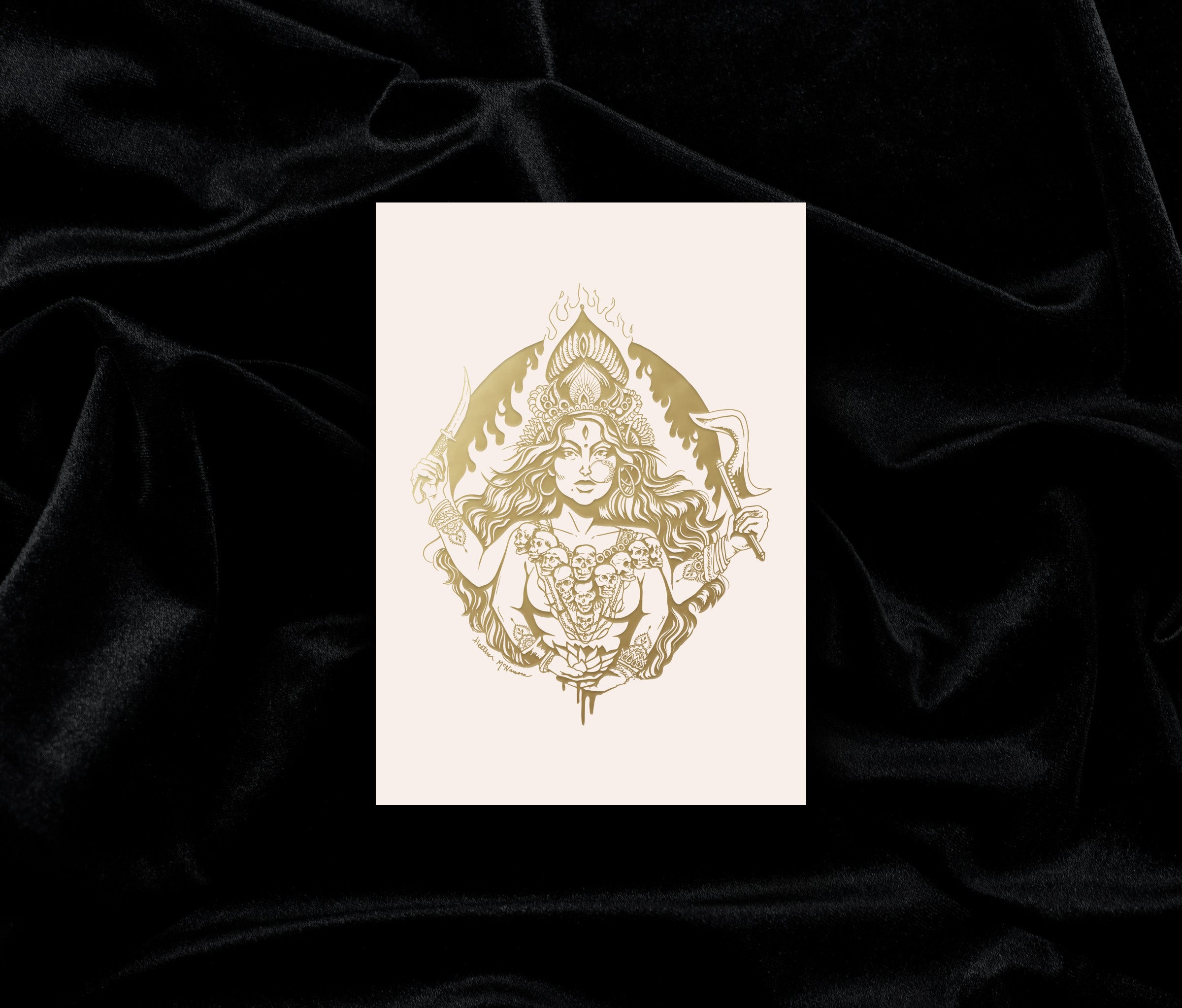 Divine Mother, Creator and Destroyer of all things, Kali arrives with intensity to destroy everything that no longer serves one's higher purpose. Though her methods may seem extreme or chaotic, her actions are driven by profound love and protection. She will strip away all that no longer is yours to open space up for transformation and beautiful creation.