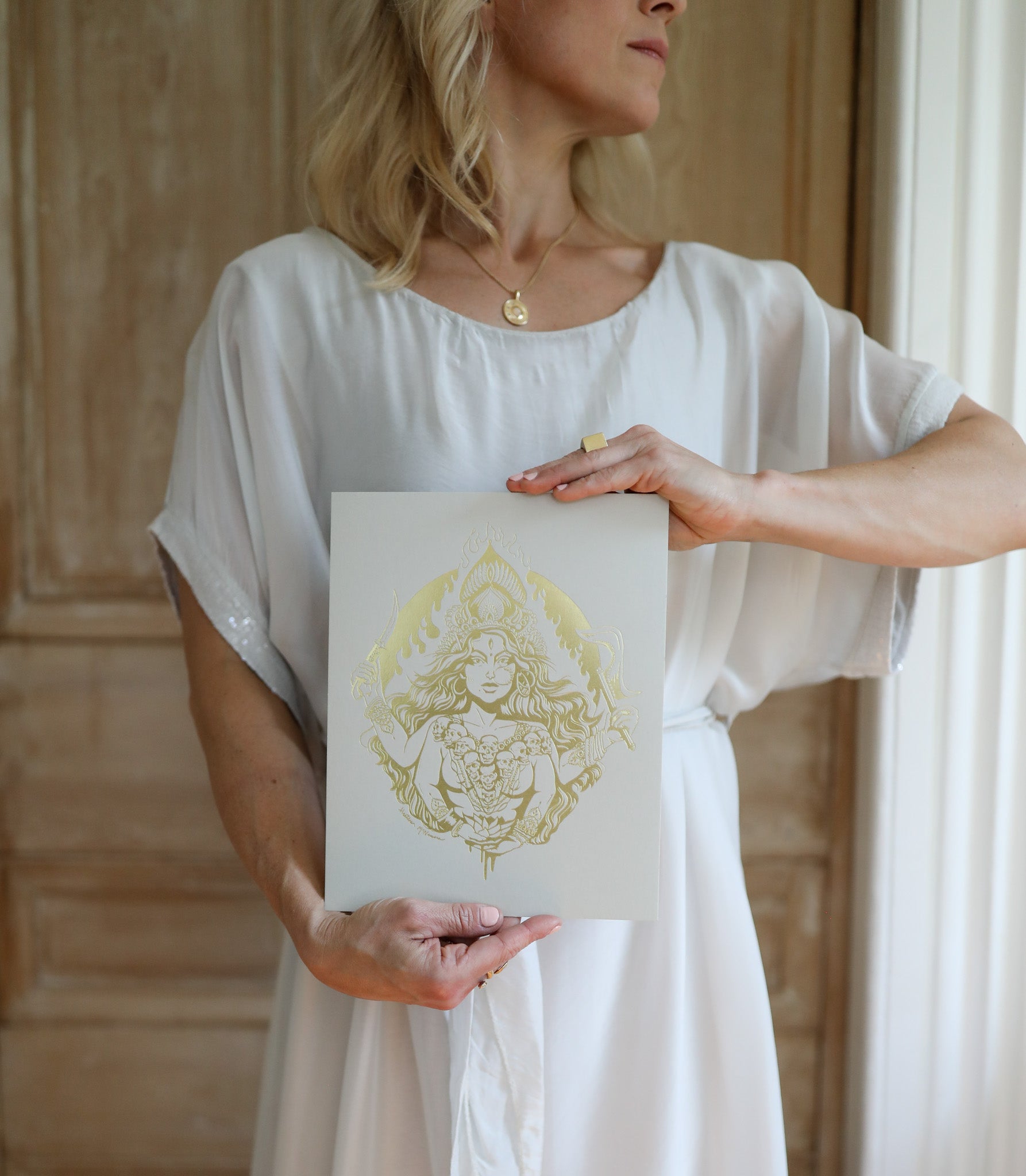 Divine Mother, Creator and Destroyer of all things, Kali is a force to be reckoned with. There is no stopping her from ferociously carrying out her mission. She is the Goddess that needs no calling in, for her presence is an indication that deep transformation is underway. She arrives in a fury, full of intensity and dedicated to stripping away all that is no longer serving you. Considered one of the most intense deities, Kali creates chaos and wreaks havoc on your life. Though feared by many who don’t understand her, Kali’s dance of destruction is said to have saved the world, and her intent is to save yours. For within her rage is intense love. She is the epitome of untamed feminine strength; a fierce Mother and divine protector.