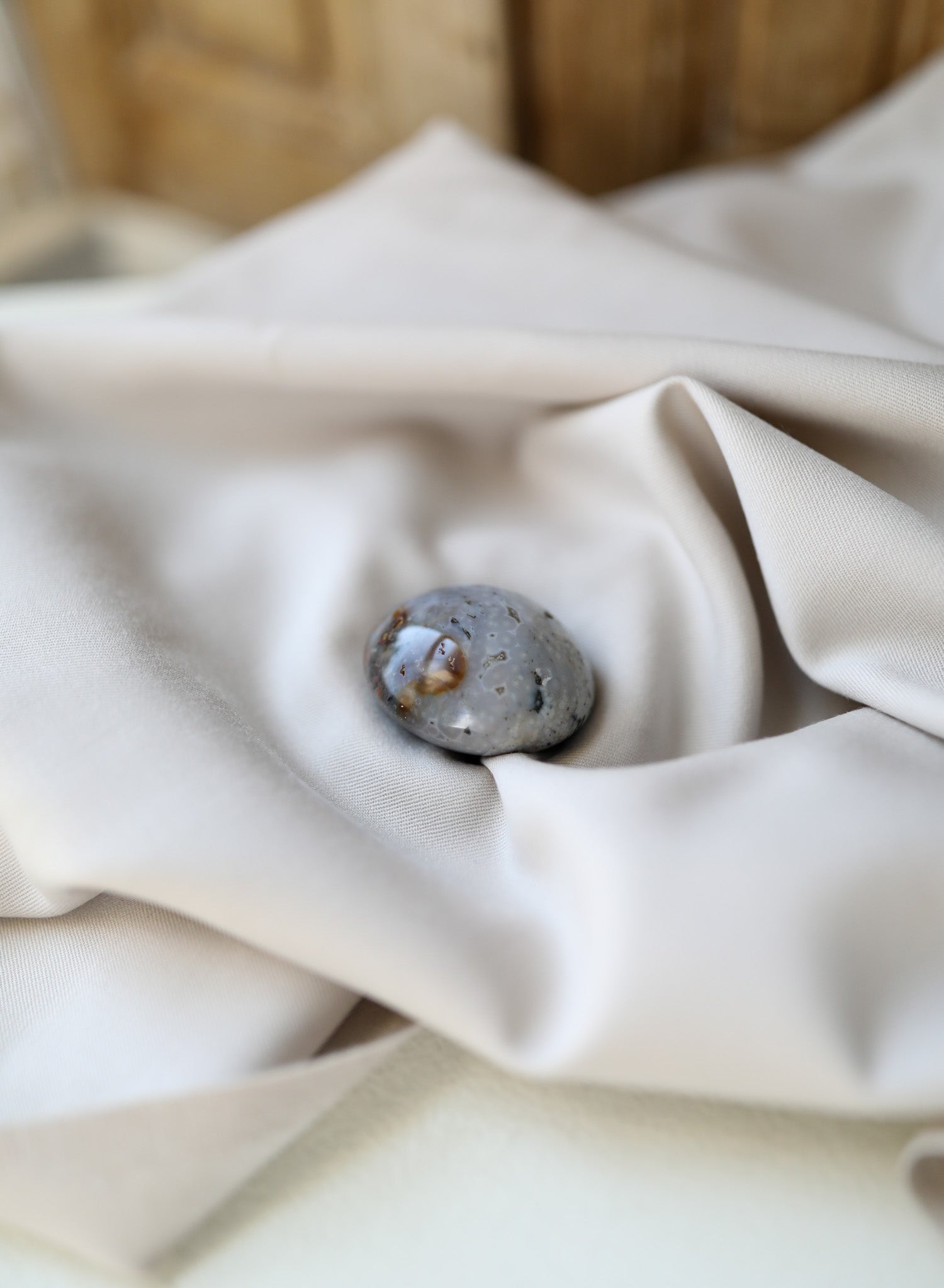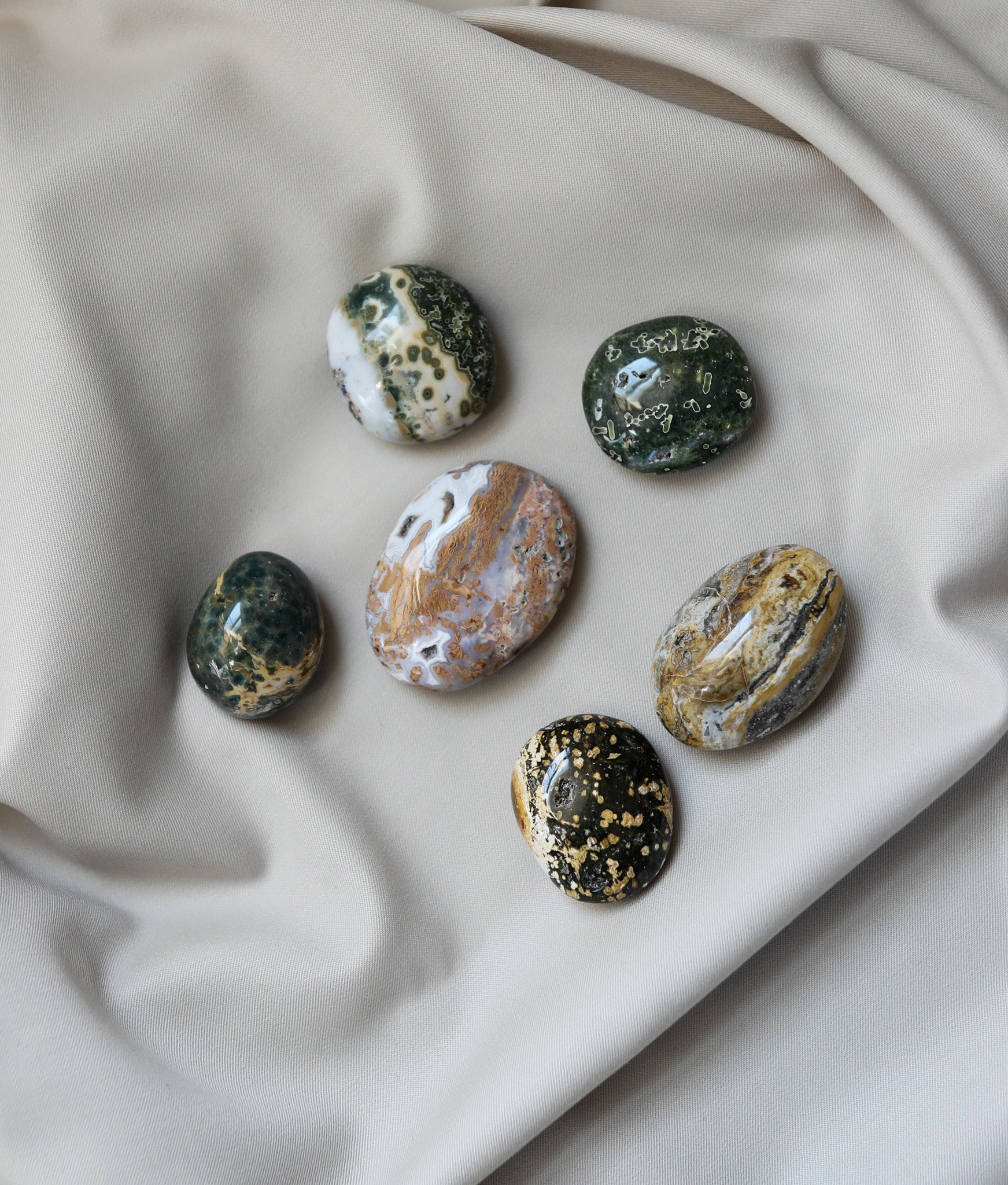 Also known as the Atlantis Stone, Ocean (Orbicular) Jasper is said to hold mystic knowledge within it. A supreme nurturer and stone of renewal and strength, Ocean Jasper supports you in reclaiming your inner wisdom, and assists in the wise use of power and will. This stone can be extremely empowering because it supports the acceptance of personal responsibility and encourages patience. It helps one become more positive and comfortable with themselves, and in doing so, express their true self and unresolved feelings with ease.