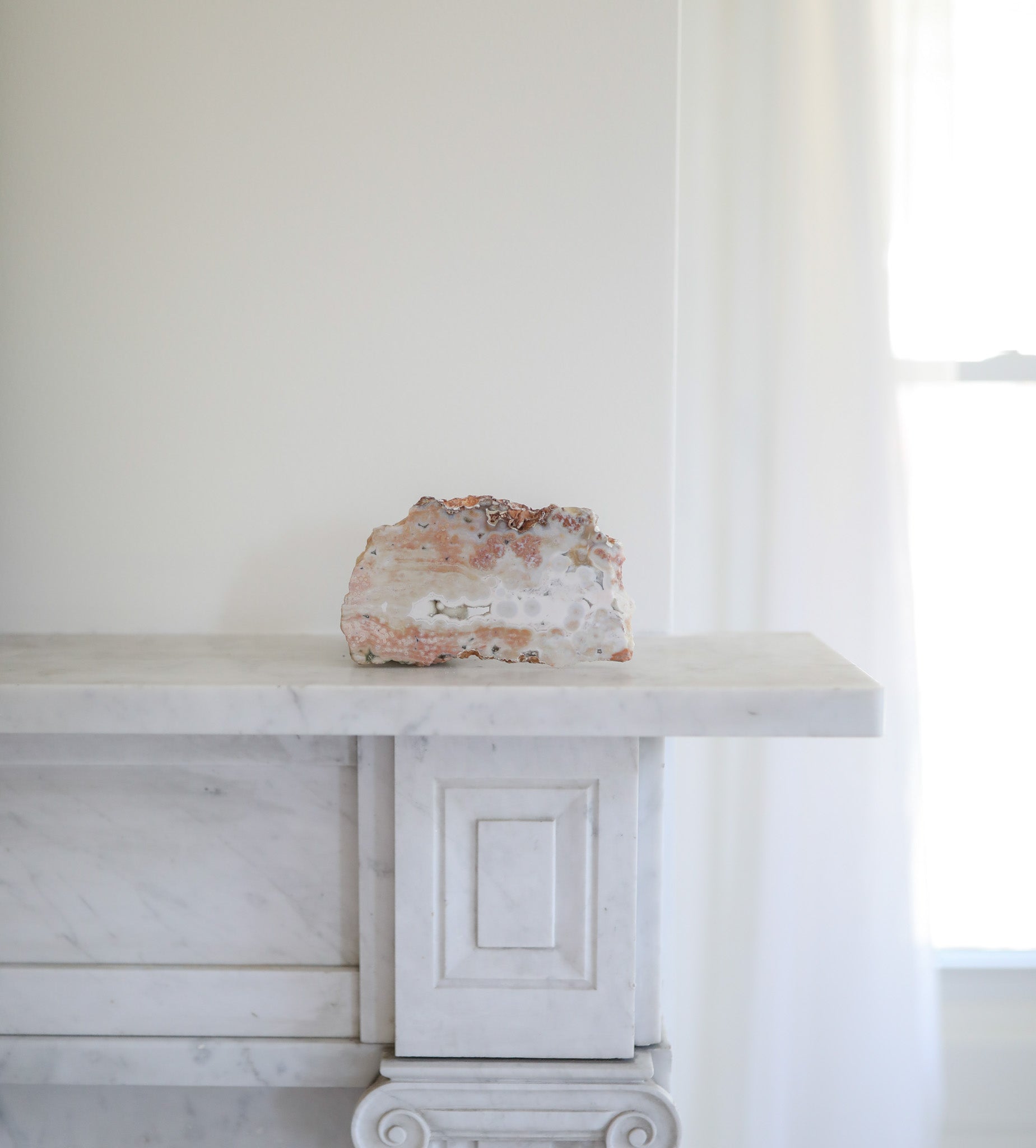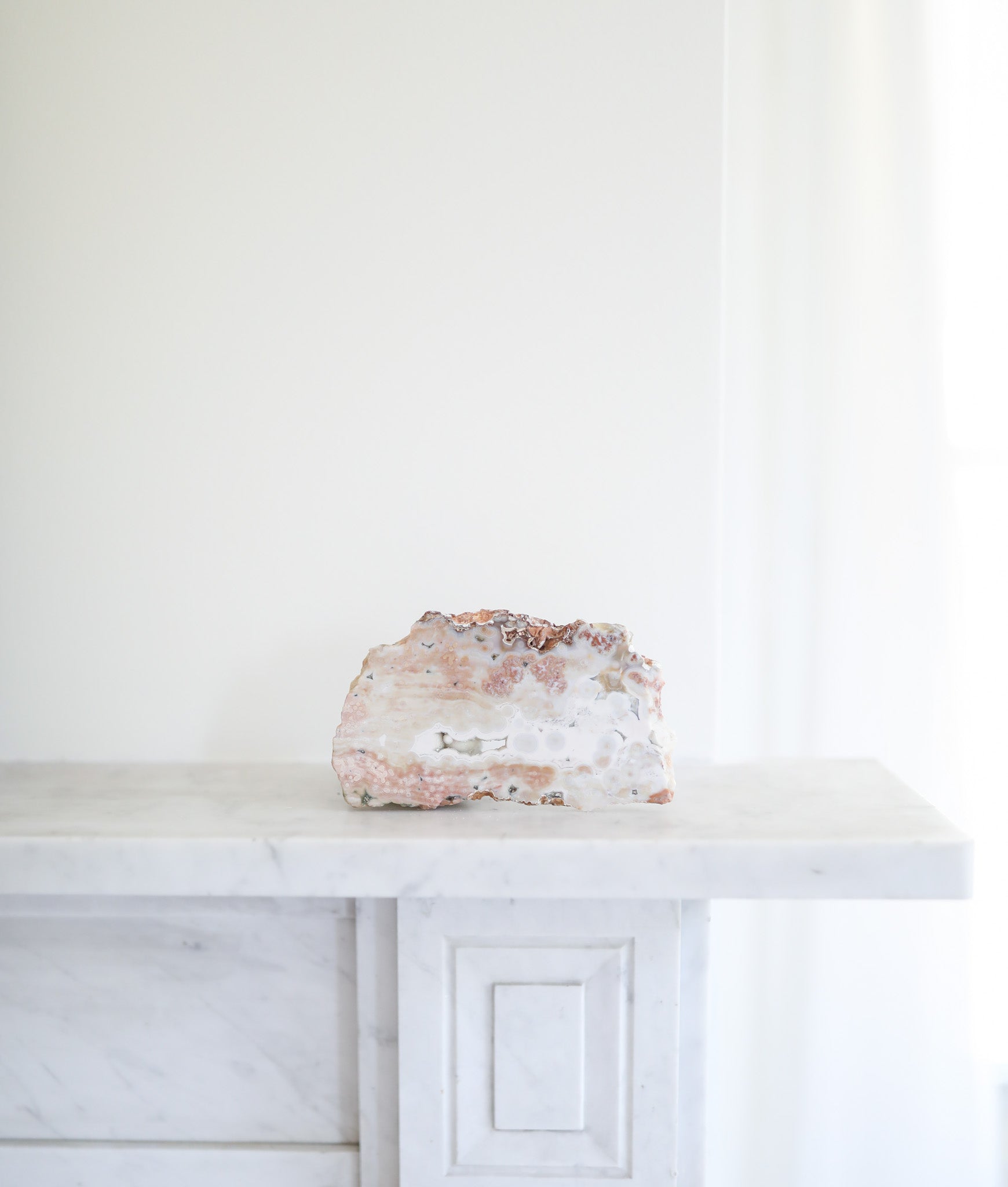 • This statement piece of Ocean Jasper is a one-of-a-kind slab style piece and measures 6.5" wide, by 3.5" tall, and ⅜" thick.