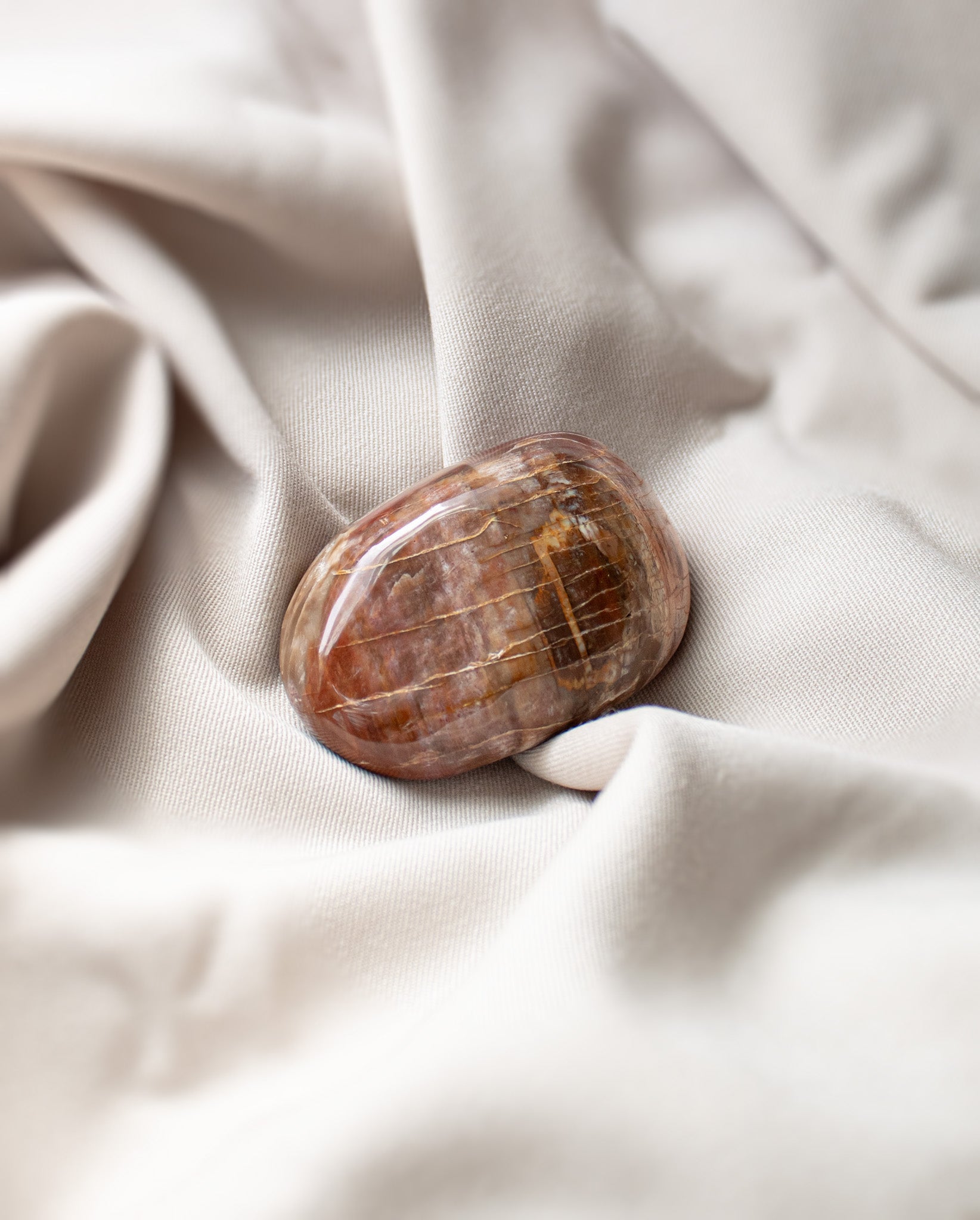 • Each palm stone's pattern and exact shape is unique, but mostly oval and measuring 2"-3" in diameter, allowing the stone to fit beautifully in one's palm, or to be placed on the body